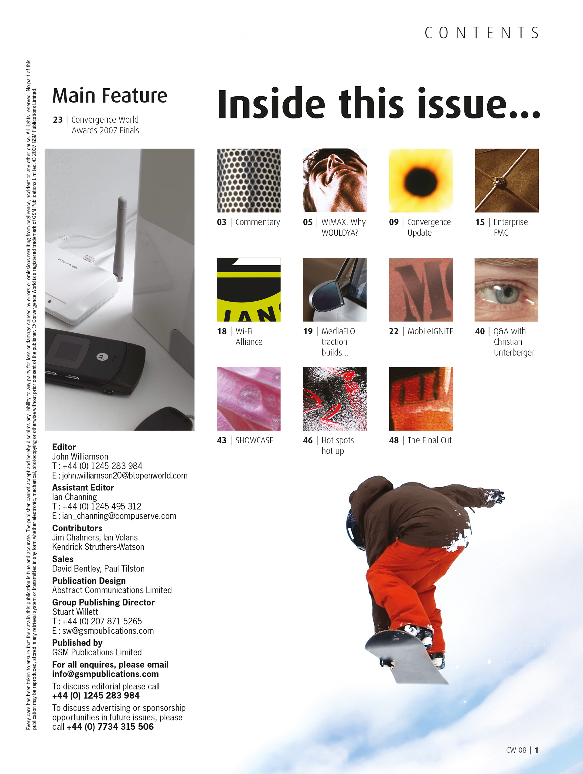 Using editorial content supplied design, originate and organise print and distribution of Convergence World to the mobile marketplace in the UK and globally.